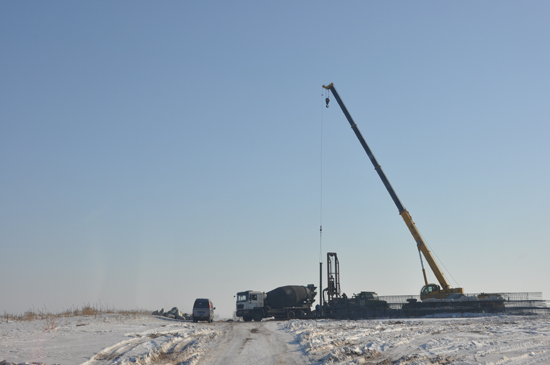 華能大慶綠源風(fēng)電五棵樹風(fēng)電場以及華能大慶綠源風(fēng)電新立風(fēng)電場樁基工程均位于黑龍江省大慶市大同區(qū)五棵樹以北。本工程為風(fēng)機(jī)承臺下鉆孔灌注樁施工,地層主要以粉土為主。施工時(shí)采用回轉(zhuǎn)鉆機(jī)反循環(huán)成孔,本項(xiàng)目共完成直徑800mm鉆孔灌注樁814根,灌注混凝土14133.43 m3,鋼筋加工1573.71t,后壓漿1440m3。